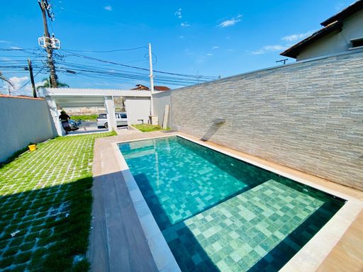 Excelente Oportunidade de Casa Térrea Nova Recém Construída, Imóvel sendo três quartos amplos sendo uma janela, sala ampla, cozinha grande com ilha integrada a churrasqueira, piscina, vagas de garagem. Casa recém entregue, próximo a mercado, padaria, farmácia, escolas, próximo ao Sesc, próximo a praia. Agende já sua visita conosco!