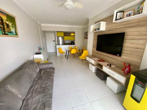 Excelente Apartamento a uma quadra da praia, imóvel sendo dois quartos sendo uma suíte, sala ampla, cozinha, banheiro, área de serviço, varanda gourmet com vista pro mar, duas vagas de garagem, condomínio com lazer completo. Agende já sua visita conosco!