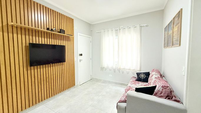 Excelente apartamento com 2 dormitórios, muito bem mobiliado. O imóvel conta com sala aconchegante, ar-condicionado, cozinha com móveis planejados, banheiro e quintal privativo com espaço gourmet e churrasqueira.