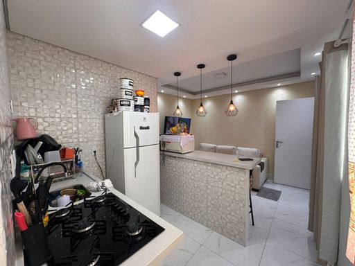 Excelente Apartamento Reformado, imóvel sendo dois quartos, sala com teto rebaixado, cozinha com belíssimo acabamento, banheiro, área de serviço, uma vaga de garagem, condomínio com portão automático. Imóvel com documentação em ordem, aceita financiamento bancário!
