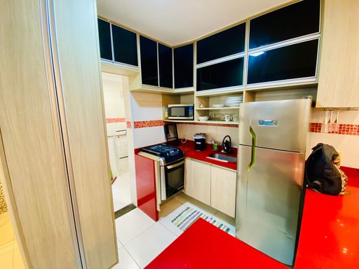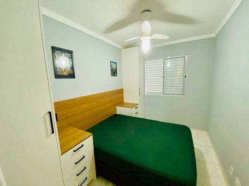 Excelente Oportunidade de Apartamento, imóvel completamente mobiliado e reformado, imóvel sendo dois quartos, sala ampla, cozinha, banheiro, área de serviço, uma vaga de garagem, condomínio com portaria, com zeladoria, salão de festa.