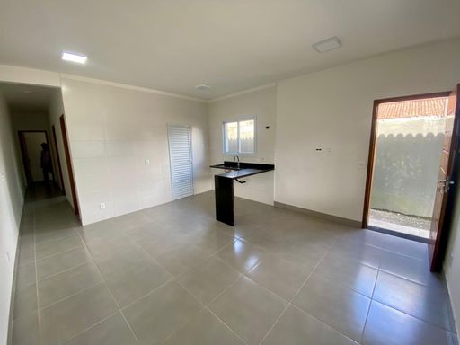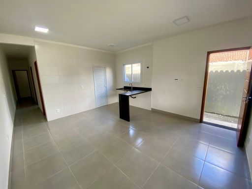 Excelente Casa Térrea Nova, imóvel sendo dois dormitórios sendo uma suíte, sala ampla, cozinha americana, banheiro, área de serviço, duas vagas de garagem com portão automático, quintal espaçoso com a possibilidade de fazer uma ótima área gourmet, aceita financiamento bancario!