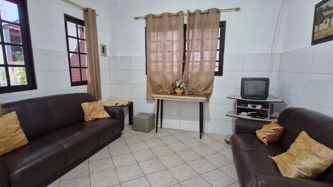 Casa localizada no bairro Jardim Raphael, em Bertioga, a aproximadamente 500 metros da praia, em região tranquila e bem valorizada.