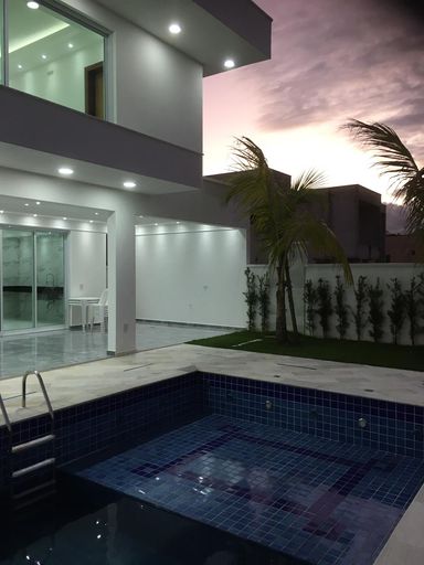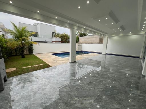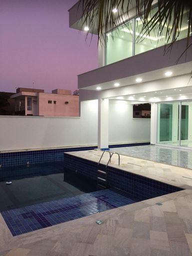 Imóvel de alto padrão com 5 suítes, 7 banheiros, piscina e hidromassagem com 7 pontos, oferecendo conforto e sofisticação em cada detalhe. Conta com sistema de aquecimento solar, com apoio a gás ou elétrico, 4 vagas de garagem, gesso com iluminação de descanso, esquadrias em alumínio linha Gold, vidros verdes e portas e janelas com persianas elétricas. Acabamentos em porcelanato polido de primeira linha.
