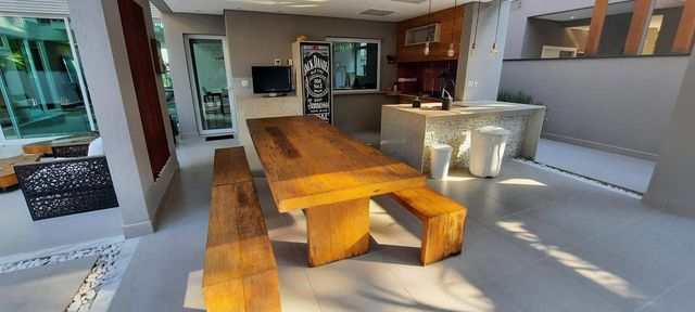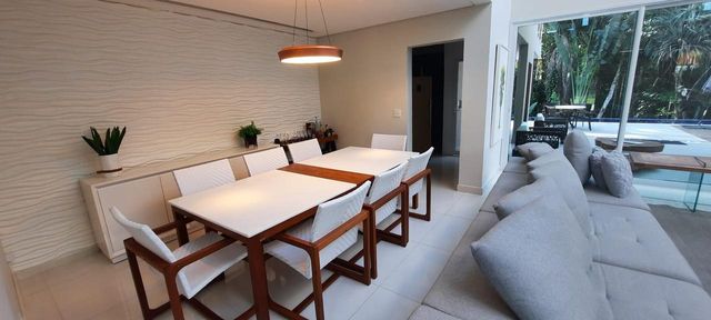 São 5 dormitórios, todos suítes, 2 salas de TV, sala de jantar, cozinha completa, lavanderia e uma área de lazer excepcional com piscina, espaço gourmet com churrasqueira e amplo quintal.