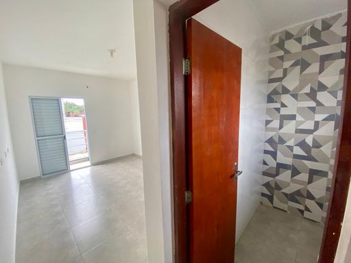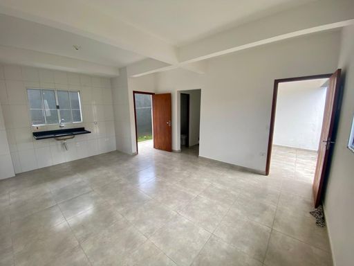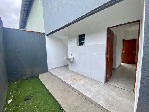 Sobrado duplex com duas suítes, três banheiros, sala ampla e cozinha americana integrada. Possui duas vagas de garagem e quintal nos fundos, ideal para área de serviço ou espaço de lazer.