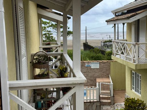 O condomínio oferece piscina e segurança, proporcionando conforto e qualidade de vida perto do mar.